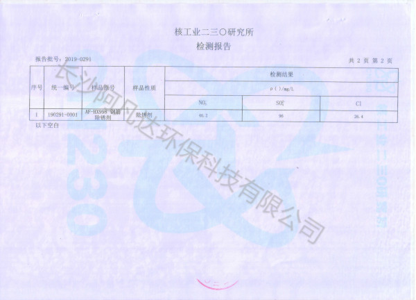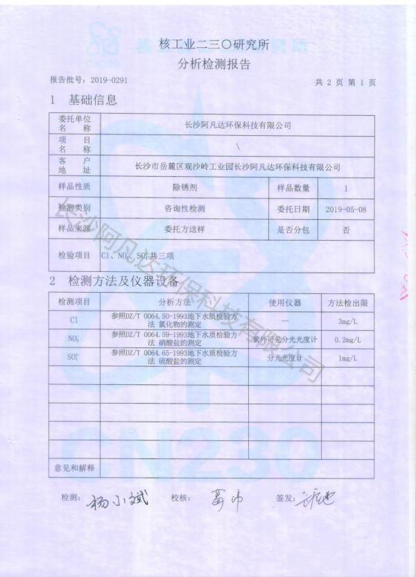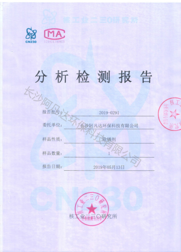 鋼筋除銹劑分析檢測(cè)報(bào)告: